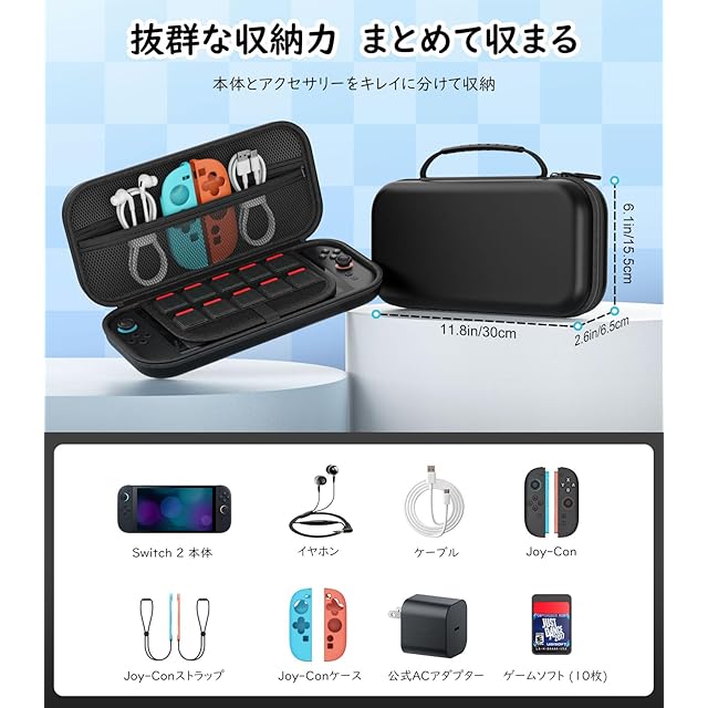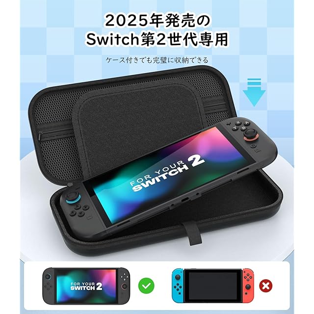 「適用機種」 2025年発売のSwitch第2世代を向けに専門設計した全面保護収納バッグとなります。Switch(x)/Switch Lite(x)/Switch有機ELモデル(x)に適用できませんので、ご注文になる前に機種をしっかりと確認してください。