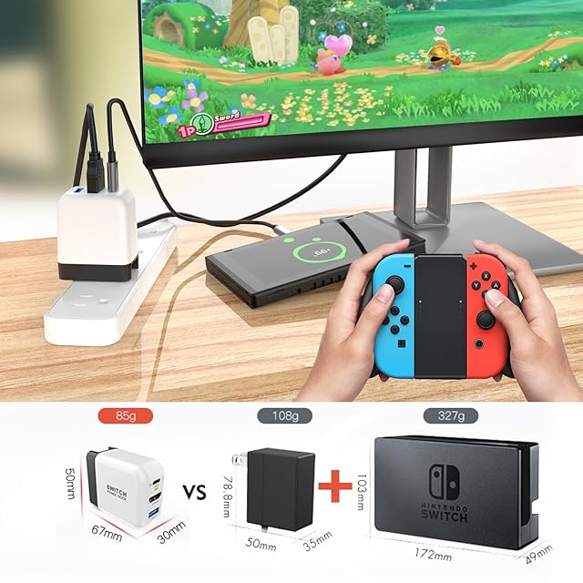 【軽量&コンパクト】本Switch ドック充電器は非常に高い特性を備えた新半導体素材GaN(窒化ガリウム)を採用したことで手のひらサイズに小型軽量となり、気軽にカバンやポケットに入れて持ち運ぶことができます。