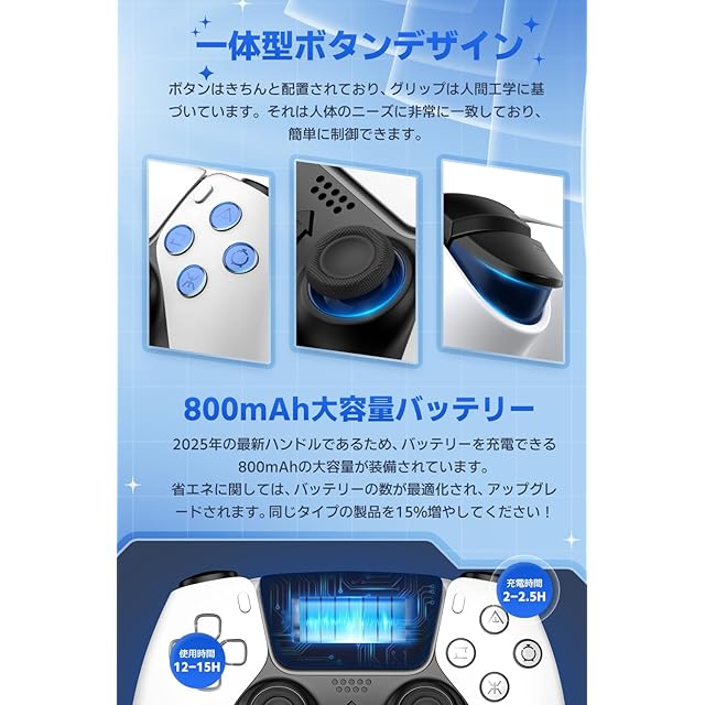 【大容量電池&人間工学デザイン】2025年度最新のプレイステーション4ハンドルであるため、800mAhの大容量充電式電池を搭載しています。高感度6軸ジャイロセンサーを搭載し、コントローラーを傾けたり動かしたりする制御が可能です。 視点の移動や画面の傾きなどを簡単に操作でき、より快適なゲーム体験をお楽しみいただけます。 10 メートルの距離で遅延がゼロで、高速フィードバック、瞬時の送信、100% の安定性をします。 PS4 コントローラーの連射デザインは最新の人間工学に基づいており、指にフィットする質感のグリップを備えています。