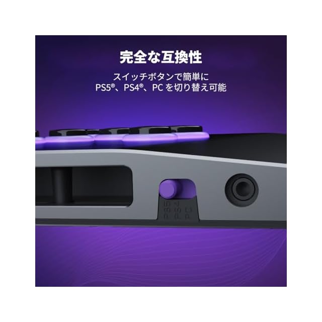 【大会向けの設定と機能】 トップコントロールバーを素早く無効にするトーナメントロックスイッチで、誤操作による失格を防止。また、モード切替スイッチを使用して、使用機器(PlayStation 5 / 4 / PC)を簡単に切り替えることができます。