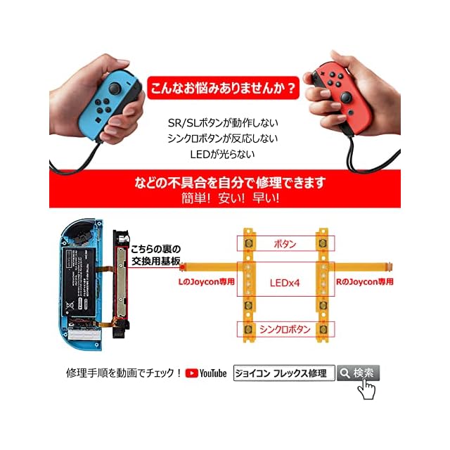 【SL/SRボタンとLEDの問題を安く簡単に解決♪~】「SR/SLボタンが動作しない」「シンクロボタンが反応しない」「LEDが光らない」なとの悩みがありませんか?本製品の交換用SR/SLボタン・フレックスケーブルも自分で交換でき、以上の不具合を修理できます。