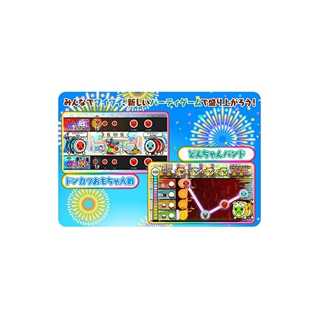 相棒のどんちゃん、オミコシティで出会ったくもきゅんと一緒に太鼓マスターを目指そう! 収録曲は「紅蓮華」「Feel Special」「夜に駆ける」など前作を超える76曲を収録! 苦手な部分を繰り返し練習してスキルアップできる「上達サポート」や、世界中のプレイヤーと演奏バトルを楽しめる「オンラインランクマッチ」! 他にも、おもちゃでデッキを組んで戦う「ドンカツおもちゃ大戦」、4人でライブの成功を目指す「どんちゃんバンド」などみんなで遊べる新モードも搭載!