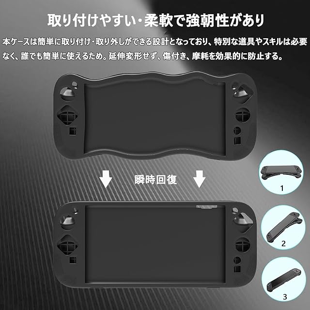 【上質なシリコン素材採用 】シリコンカバー/スティックカバーは環境にやさしく無毒な上質シリコン素材を採用されました。見た目が魅力的で、摩耗に強く、滑り止め機能や防塵効果を備えた全面保護を提供してくれます。優れた手触りと精密なあ仕上がりにより、超軽量ながらデバイスをあらゆる衝撃からしっかりとガードできます。夏にゲームしている時は汗をかきますが、シリカゲルスリーブは汗に触れずに本体の寿命を延ばすことができる。
