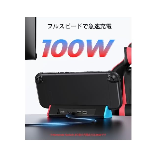 【充電しながらプレイ可能】TVモードやテーブルモード中もSwitch 2を充電可能。内蔵スマートチップにより、短絡・過電力・過熱・復帰の4重保護機能を提供し、安全に使用できます。