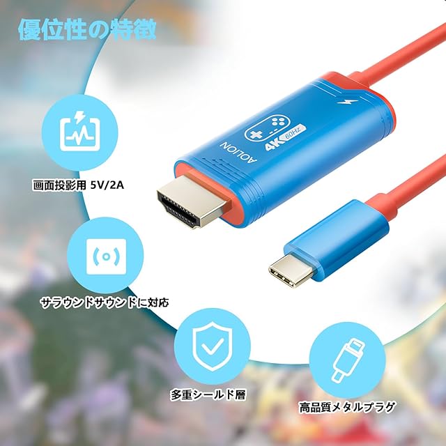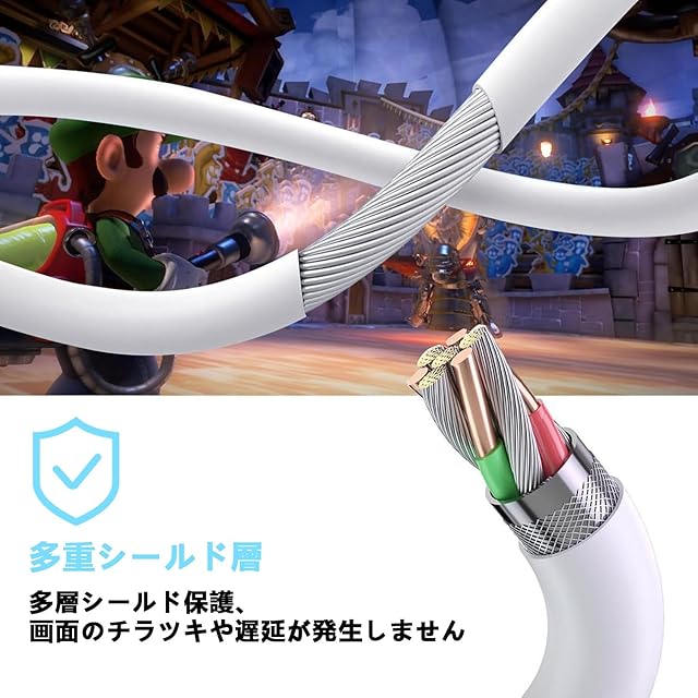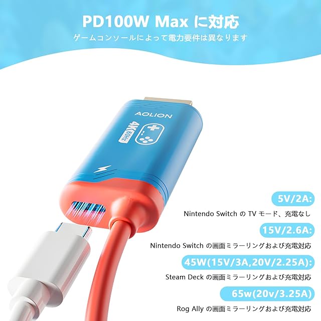 充電しながらプレイ可能:PD 認定のインテリジェントチップを搭載し、変動する電圧を効果的に安定した電圧に変換できます。この HDMI ケーブルは 100W PD 急速充電に対応しているため、充電しながらプレイが可能で、Switch 本体にダメージを与えることはありません。