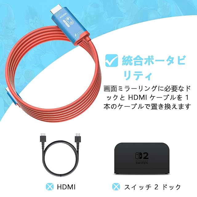 新アップグレード:Switch 2(2025 年モデル)に対応。究極のポータブルデザインにより、HDMI、USB-C、充電ポートを 1 本のケーブルに統合し、Switch のドックと HDMI 投影ケーブルを完全に置き換えます。