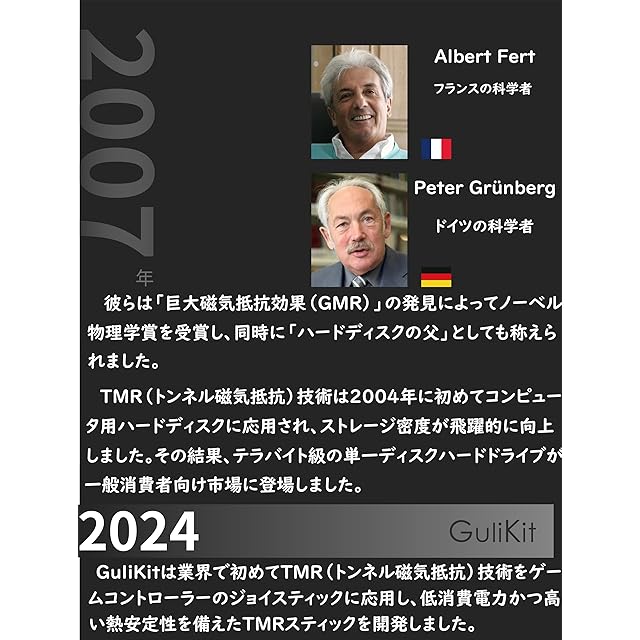 次世代のTMR電磁式ジョイスティック:GuliKitは独自のホール効果ジョイスティック技術をさらに進化させ、TMR(トンネル磁気抵抗)電磁式ジョイスティックを開発しました。非接触型TMR電磁センサー機構による完全ドリフトフリー、従来のジョイスティックでは避けられなかった「スティックドリフト」現象を根絶し、耐久性を実現しました。さらに低消費電力設計と高温環境下でも安定した動作特性を兼ね備えており、常に最高のパフォーマンスを発揮します。