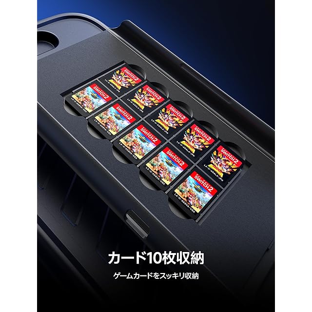 【10ゲームカードスロット内蔵】内蔵の 10個のゲームカードスロットで、お気に入りの Switch 2 ゲームカードをしっかり収納・整理。別途カードケースを持ち歩く必要がなく、いつでも手軽にゲームを楽しめます。