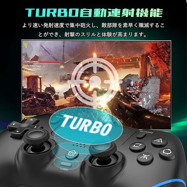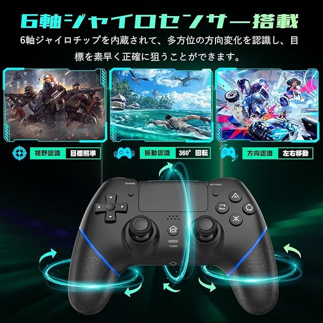 【二重振動&Turbo 連射で勝率 UP】6軸ジャイロセンサーと振動モーターで敵の攻撃に即応答。ゲーム中にリアルな振動体験を提供。TURBO 自動連射機能は自由に設定可能で、手動 / 自動連射の切り替えも簡単。格闘系ゲームではこの機能を活かして勝利を掴み取りましょう!