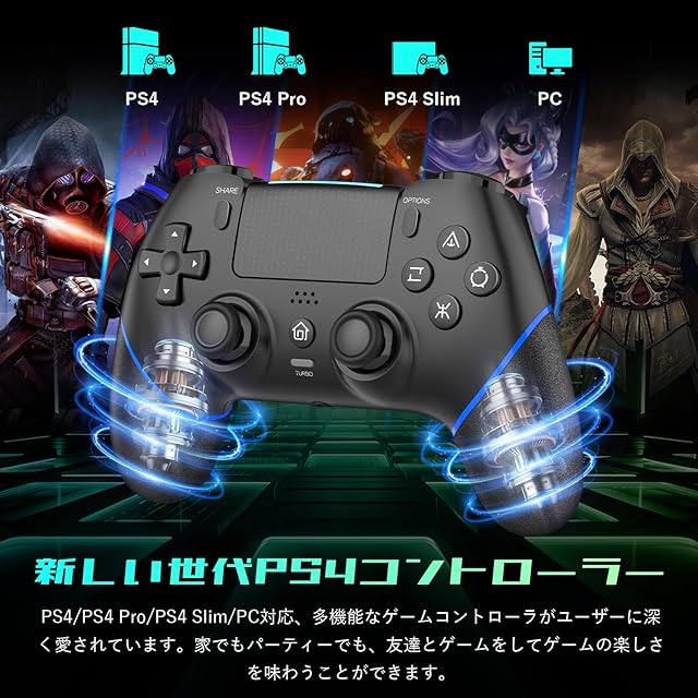 ✅【2025 新登場の人気 PS4 コントローラー】Onefun 最新 PS4 用無線コントローラー、機能性・操作性全面アップ!TELEC/CE/FCC/RED/ROHS など多認証取得。最新 Bluetooth 技術で、10 メートル離れても遅延ゼロ、高速フィードバックで安定したゲーム体験を提供。PS3/PS4/PS4 Pro/PS4 Slim/PC(Windows7/8/10)対応で、最大 4 台同時接続で家族や友人と一緒に楽しめます。