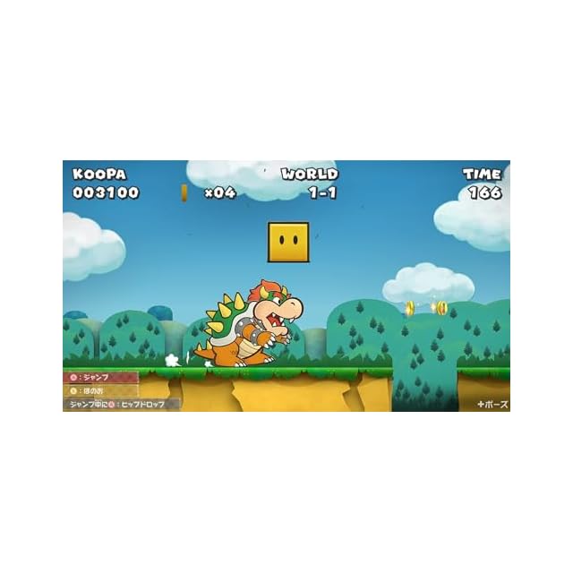 【ストーリー】「宝探しを手伝ってほしい」というピーチ姫からの手紙を受け取り、「ゴロツキタウン」へやってきたマリオ。しかし、ピーチ姫の姿は見当たりません。ピーチ姫の手がかりを求め、街で宝の研究をするフランクリ先生を訪れたマリオは、「1000年のトビラ」が宝へとつながること、そしてトビラを開くには7つの「スターストーン」がいることを聞きます。宝を追えばピーチ姫に会えるはず、と考えたマリオは、街で出会ったクリスチーヌとともに、スターストーンを探すべく紙の世界の冒険に出かけます。また、どうやらマリオだけでなく、クッパもピーチ姫を探しているようで……