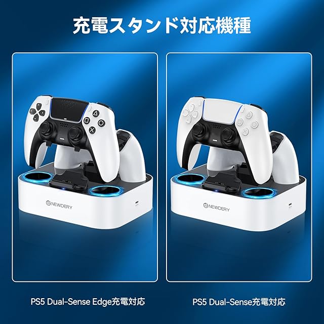 【充電だけでなく収納も可能】2つのコントローラーを同時にPS5充電器に収納できるので、整然と見えるだけでなく、コントローラーの傷や摩耗を減らすことができます。