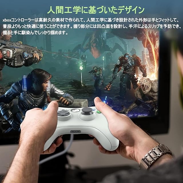 【人間工学に基づいたデザイン】xboxコントローラーは高耐久の素材で作られて、人間工学に基づき設計された外形は手とフィットして、普段よりもっと快適に使うことができます。握り部分には凹凸面を設計し、手汗によるスリップを予防でき、握ると手に馴染んでしっかり掴めます。重さわずか280gで、軽く、グリップ型で持ちやすく、長時間でも快適にプレイできるワイヤレスコントローラーです。キーの間隔は適度に設計されており、長時間演奏しても手が疲れません。