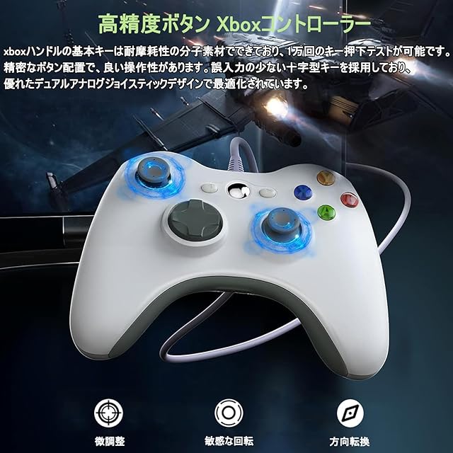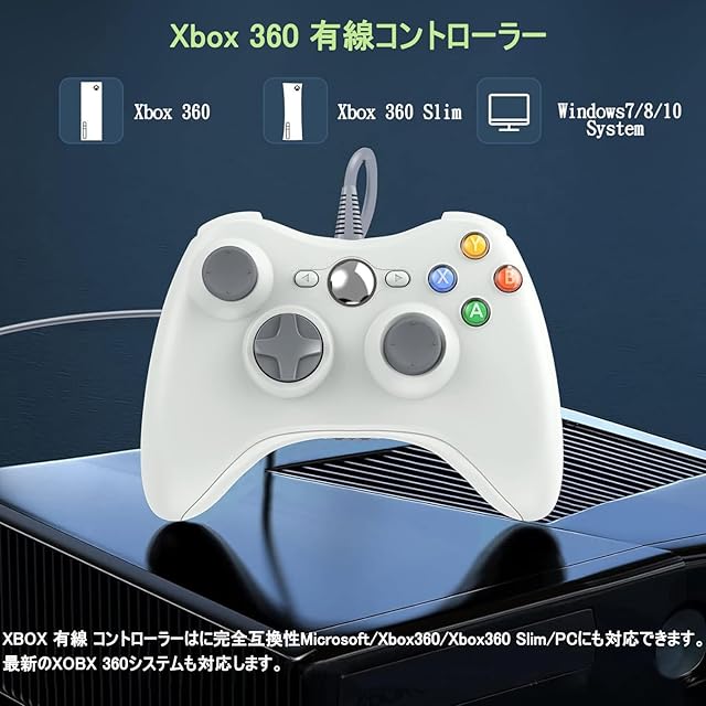 Xbox コントローラー 有線 [2025アップグレード版] ENKE Xbox 360 コントローラー PC ゲームパッド USB接続 遅延なし 高耐久ボタン 人体工学 二重振動 ジョイスティックをアップグレード Microsoft Xbox Slim 360/PC/Windows7/8/10に対応 アシスト(ホワイト)