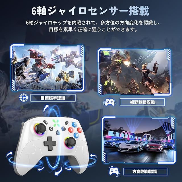【Bluetooth接続&9色RGBライト】最新のBluetooth接続技術を採用しており、高度な機能と快適かつスムーズな操作を実現しています。10メートルの距離で遅延がゼロで、高速フィードバック、瞬時の送信、100% の安定性をします。コントローラーSwitchには9色のRGBライトと3種類のライトモードが搭載されており(定常光モード/呼吸モード/レーザーモード/消灯)、お好みに合わせて自由に切り替えることができます。【1年品質&パッケージ内容】このswitch2コントローラーには1年の品質が付いています。弊社製品についてご不明な点がございましたら、当店またはアフターサービスセンターまでお気軽にお問い合わせください、24時間以内に返信いたします。パッケージ内容:コントローラー本体×1、充電ケーブル×1、日本語取扱説明書×1。