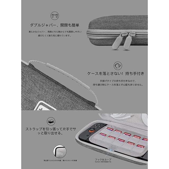 【2025年最新モデルケース】 Switch2 ケース 高密度EVA防水 耐衝撃 ハードシェル スイッチ 2 ケース ゲームカード10枚収納 兼容Switch/有機ELモデル 収納バッグ ポーチ コンパクト 軽量 全面保護 保護カバー ポータブル 持ち運び 旅行 (04-グレー) | つむぎ屋
