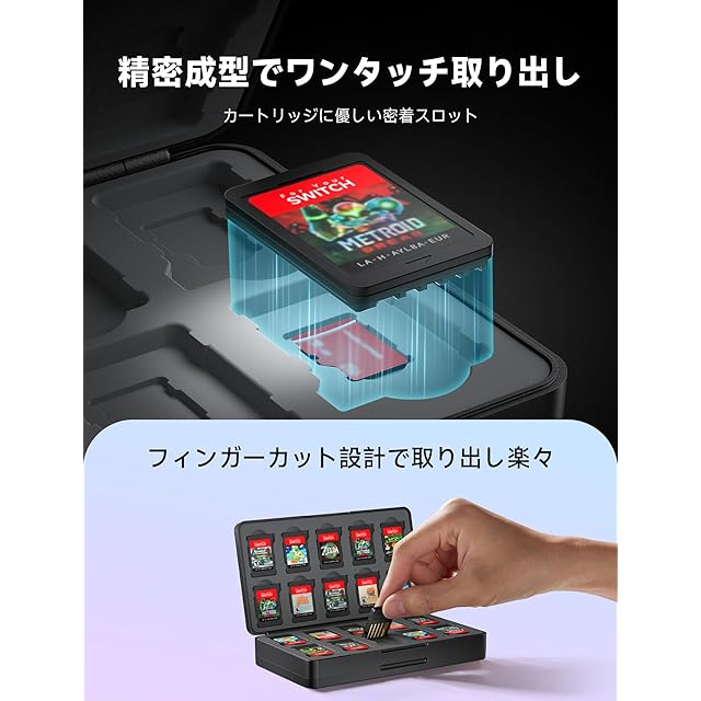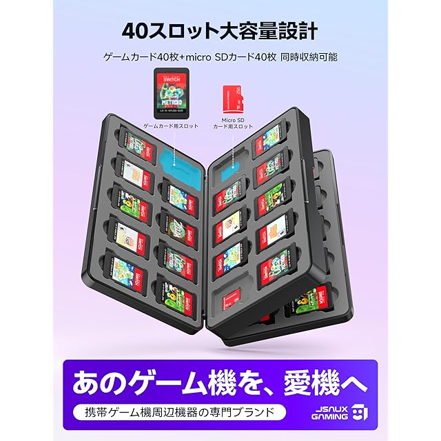 【新作ゲーム登場にも完全対応】2025年モデルおよび続々登場する新作ゲームにも万全の備え。専用スロット40個で、ゲームカードとmicro SDカードを同時収納可能。ゲームライブラリの拡張も簡単。ゲームコレクションをまとめて管理するのに最適です。