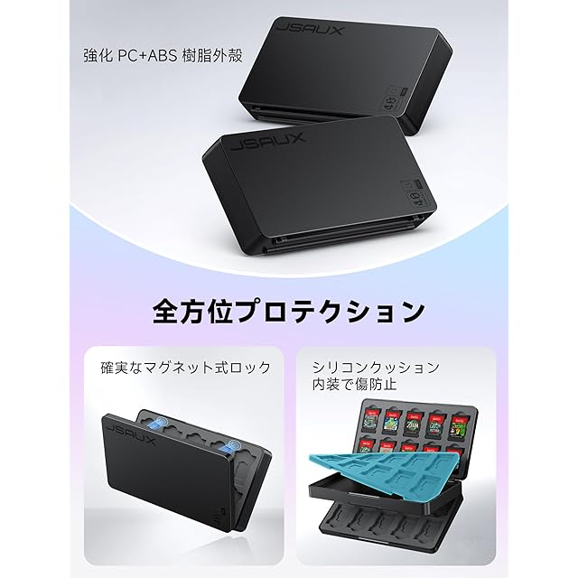 【Switch 2対応】 JSAUX ゲームカードケース|ゲームカード40枚+Micro SD40枚収納・Switch/Lite/OLED対応・マグネット式開閉・ハードシェル 整然収納・傷防止・ホコリ防止・耐衝撃・保護性能・ブラック | つむぎ屋