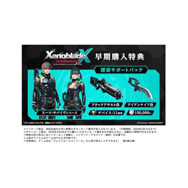 ※本作はWii Uで発売された欧米版『Xenoblade Chronicles X』をベースにした、全世界共通の仕様です。Wii U版で有料DLCとして登場したコンテンツは、本作では最初から収録されています。