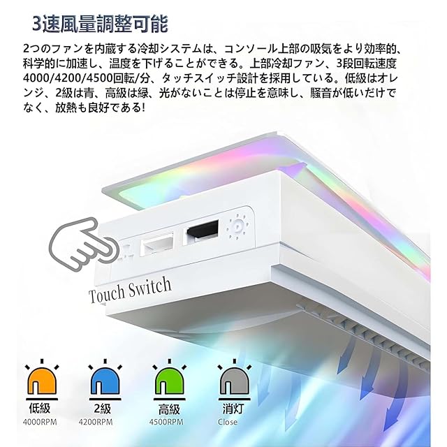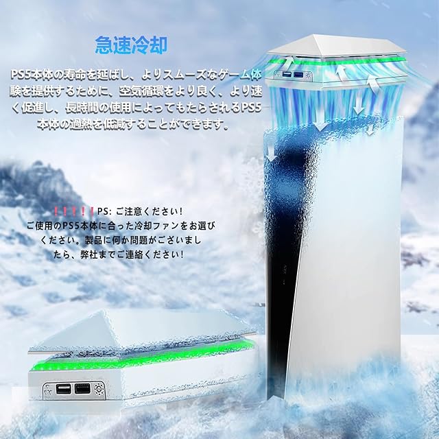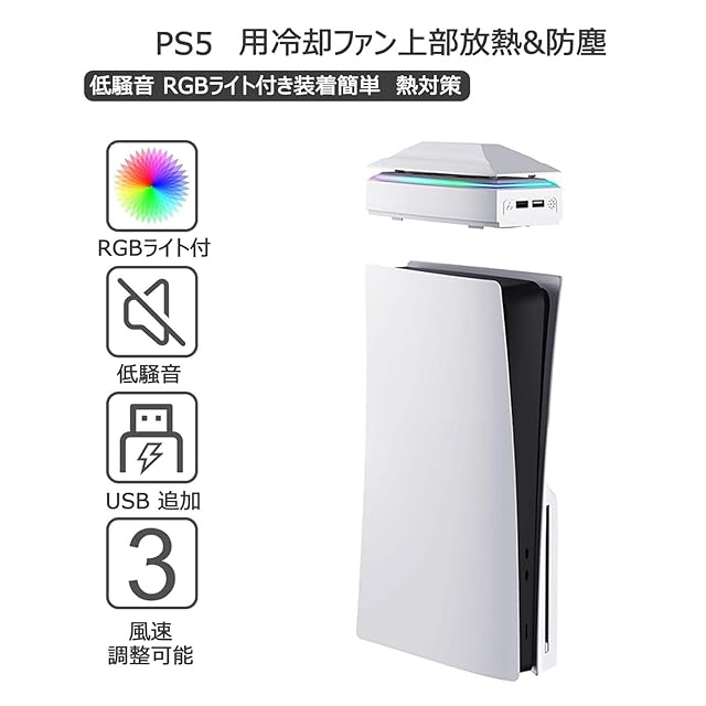 【PS5 Slim専用設計】PS5 Slim専用設計、新型PS 5上部放熱ファンが新登場。上部冷却ファン、防塵設計、3段冷却システム、8モードRGBカラーランプバンド、追加2つのusbポート。これらの機能は、ゲーム機の寿命を延長し、ゲーム体験を向上させるだけでなく、クールなゲーム気分を提供します。ディスク/デジタル版の両対応、PS5 Slimのディスク版およびデジタル版に特別に設計されたアッパー冷却ファンは、コンソールの上部に直接取り付けられ、優れた冷却効率を実現します。❗❗❗❗❗PS: ご注意ください! ご使用のPS5本体に合った冷却ファンをお選びください。 製品に何か問題がございましたら、弊社までご連絡ください!