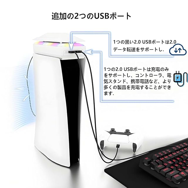 旧型 ps5用 冷却ファン ps5 冷却 旧型PS5コンソール【新登場-2in1上部放熱&防塵】AriKroii PS5用アクセサリー 上部放熱 防塵 RGBカラフルな照明モード&USBポート付 放熱ファン 3段階風速調整 2つのUSBポート 急速放熱雰囲気作りps5 周辺機器用 ディスク/デジタル版の両対応 (PS5 Slim/PS5 Pro非対応) | つむぎ屋