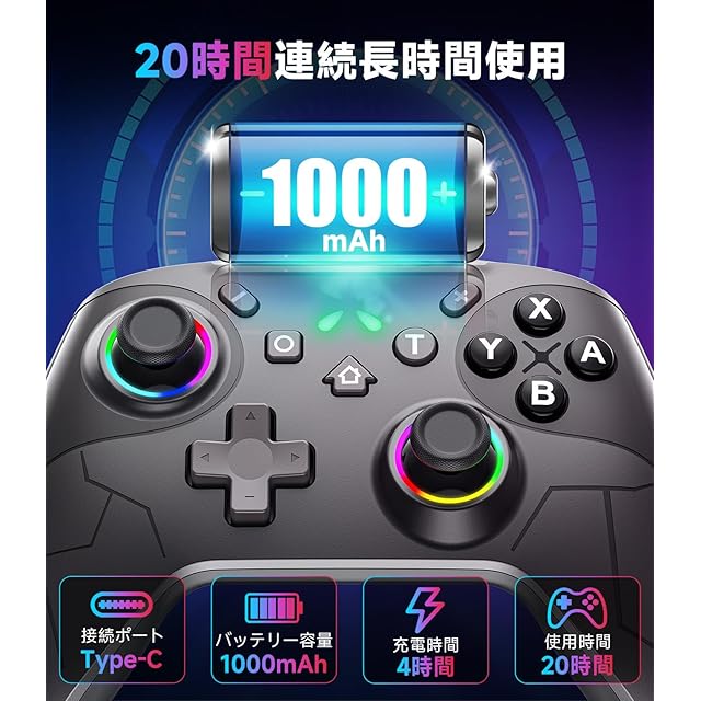 Switch 2 コントローラー ダブルホール機能 Switch1/2代对応【2025革新モデル】スイッチ プロコン TURBO自動連射機能 6軸ジャイロセンサー搭載 4階段HD振動 背面ボタン付き 9色RGBライト ゼロ遅延 無線接続 1000mAh大容量 Bluetooth 人間工学デザイン Switch全世代に対応 /PC/Android/iOSにも対応 日本語取扱説明書付き