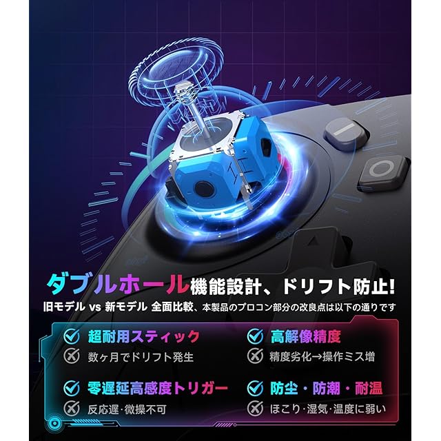 【2025革新モデルSwitchコントローラー Pro】革新版スイッチ コントローラーはSwitch1代/2代/Android/IOS16.0 以上/PCに幅広く対応。従来品の最大不満だった「スティックドリフト」を完全解決!★磁気ホールセンサー採用のダブルホール機能設計で物理摩耗を排除。→ 500万回動作テスト通過(耐久性10倍)、従来モデルと比較して長期間使用でも安定した精度を維持。★競技級精度:0.01mm微調整可能(誤差±0.3%未満)。日本ユーザー向けにABXYボタン配置を純正同様に最適化。お子様からプロゲーマーまで、すべてのプレイヤーにおすすめ。プレゼントにも最適なプロコン。