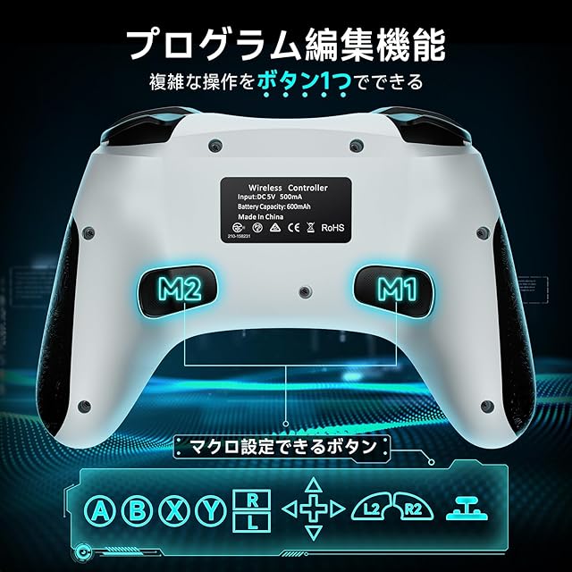 【6軸ジャイロセンサー&マクロ編集機能】高感度6軸ジャイロセンサーを搭載し、コントローラーの傾きや動きを感知します。視点移動や傾け操作などが簡単に実現し、より良いゲーム体験が楽しめます。また、スクリーンショット機能付き、ワンタッチでゲームの画像を簡単に保存しております。背面にM1とM2ボタンがあり、1つのプログラムに最大16つボタンの連続操作を自由設定が可能で、他のボタンをコピーして、複数のボタンの機能を同時に設定することができます。