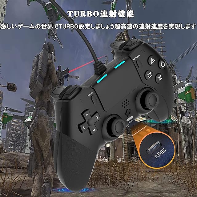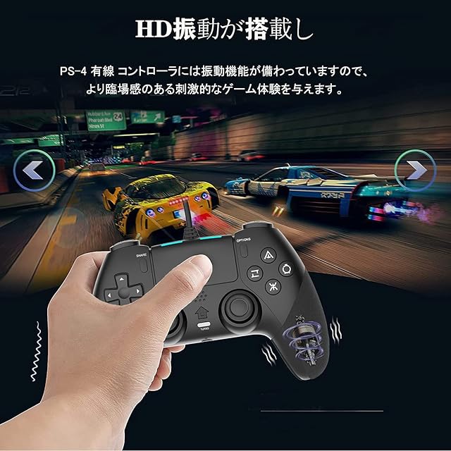 【人間工学&リアルなゲーム体験】PS-4 有線 コントローラには振動機能が備わっていますので、あなたは没入感あふれるものになり、本物のゲーム体験をもたらします。臨場感いっぱい溢れます。最新の人間工学に基づいた設計を採用しています、グリップの質感は指にフィットします。コントローラー自体は滑り防止シリコンを付いています、手に汗を握る場合にも落ちを防止します。軽くて握りやすい、長時間でも疲れにくく快適にゲームをプレイできます。注:本ゲームパッド、サウンド機能、ヘッドセット機能、タッチ機能はありません。