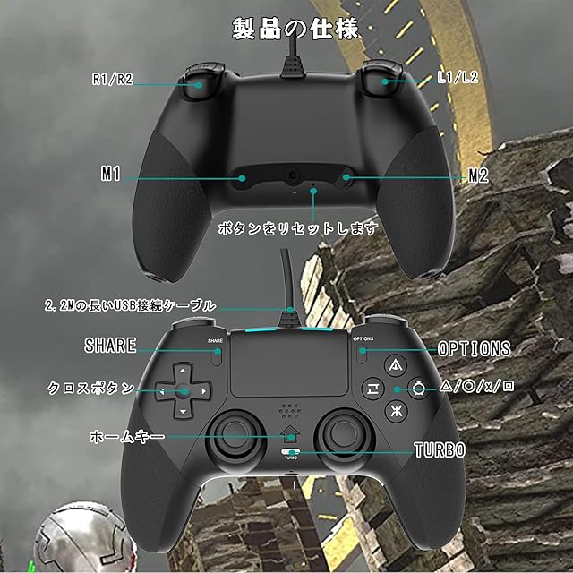 商品名:Smalife P4 コントローラー 有線 背面ボタン付き [2025年アップグレード版] ゲームパッド USB接続 遅延なし HD振動 TURBO連射 人間工学 高耐久ボタン 全バージョン P3/PC対応 日本語取扱説明書付き(ブラック)