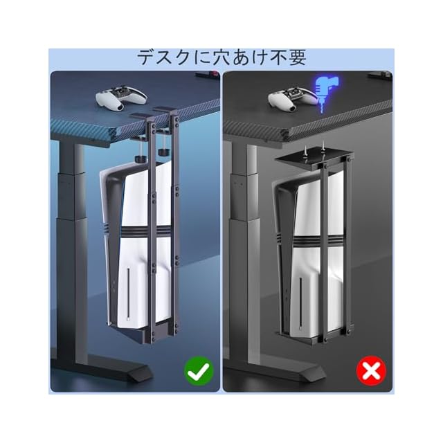 【PS5 Pro/PS5 Slim/旧型PS5対応】PS5デスク下ホルダー 新型 PS5 Pro 縦置き スタンド ゲーム機収納ラック プレステ5 マウント 穴あけ不要 傷付き防止 PS5通常版とデジタル版両対応 PS5周辺機器 デスク下 収納 省スペース | つむぎ屋