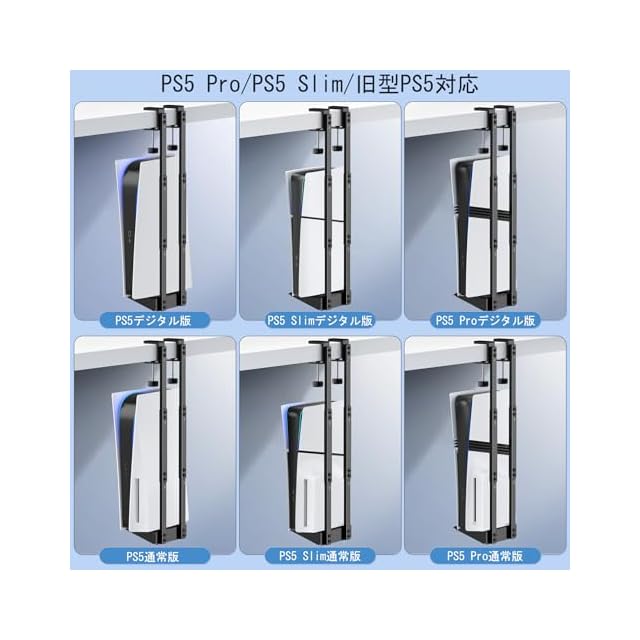【PS5 Pro/PS5 Slim/旧型PS5対応】PS5デスク下ホルダーは、PS5 Pro/ 新型PS5 Slim/ 初期型PS5通常版とデジタル版に対応しています。※PS5本体は別売り。