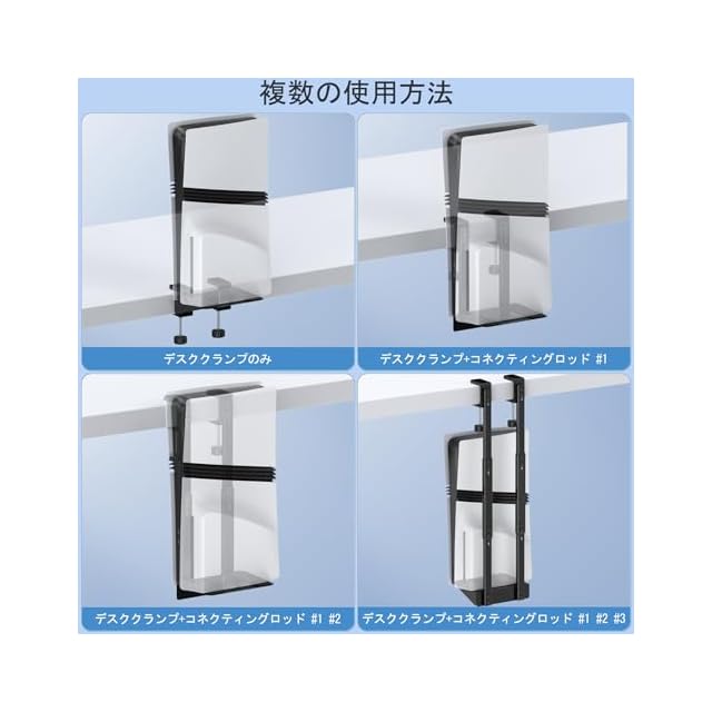 【デスク下スペースを活用】PS5収納ラック調節可能なデスククランプを備えており、さまざまな厚さのデスクに柔軟に対応できます。PS5マウントはしっかりとPS5を収納され、デスク下のスペースを最大限に活用します。