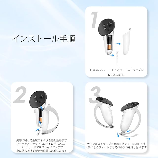 耐久性:oculus quest3S 用oculus quest3 用コントローラーグリップのコントローラーストラップは、強い耐衝撃性を備えたABSプラスチックで作られています。 下の金属バックルにより、コントローラーが脱落しにくくなり、耐久性が向上します。