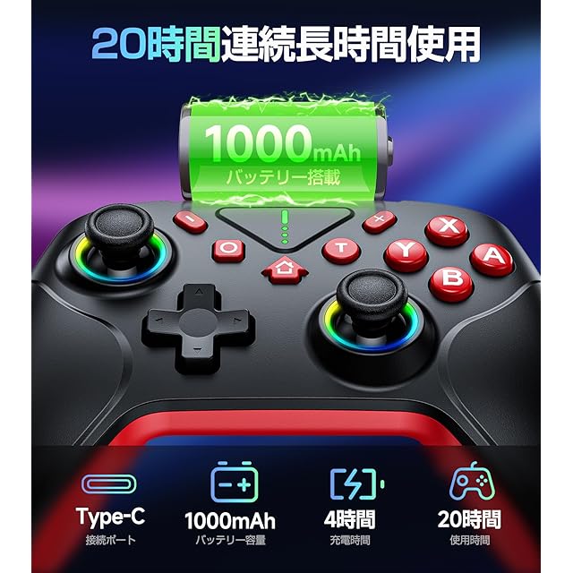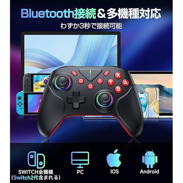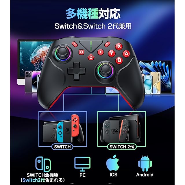 商品名:【2025革新モデル】 Switch2 コントローラー Switch1/2代対応 ダブルホール機能 TURBO連射機能 マクロ機能 背面ボタン付き 9色RGBライト 1000mAh大容量 Bluetooth 無線接続 スイッチ コントローラー ジャイロセンサー搭載 4階段HD振動 プロコン Switch全世代に対応 Android/IOS/PCにも対応 日本語取扱説明書付き