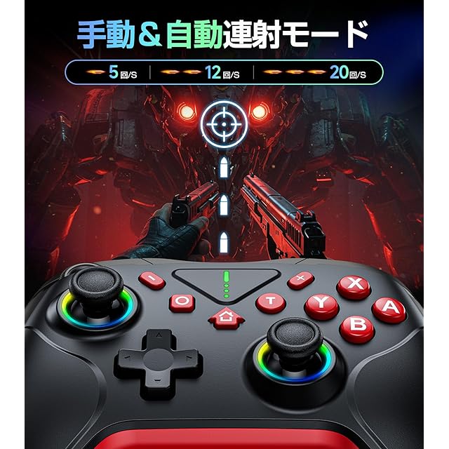 【4段HD振動&背面マクロボ&RGBライト】高感度モーションコントロールで精密な視点操作を実現。★4段HD振動の科学:スイッチ コントローラーは内蔵4段階振動(0%/30%/70%/100%)を搭載し、ゲーム内の物理演算と連動します。優れた振動により、臨場感が劇的に強化されます。 ★背面のM1/M2ボタンを使うことで、最大32個の連続コマンドを記録・実行できます。スムーズな操作性を実現。 ★プロコントローラーSwitchには9色のRGBライトと4種類のライトモードが搭載されており/呼吸モード/レーザーモード/消灯)ゲームの雰囲気やお好みに応じて、ワンタッチで簡単にカスタマイズ可能です。