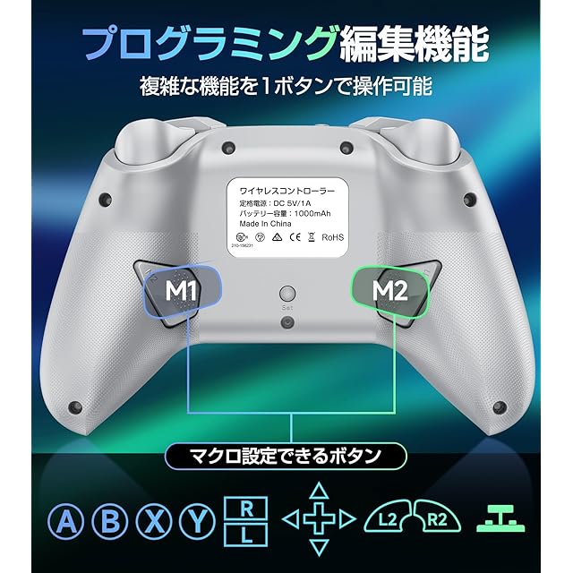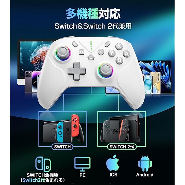 商品名:【2025革新モデル】 Switch2 コントローラー Switch1/2代対応 ダブルホール機能 TURBO連射機能 マクロ機能 背面ボタン付き 9色RGBライト 1000mAh大容量 Bluetooth 無線接続 スイッチ コントローラー ジャイロセンサー搭載 4階段HD振動 プロコン Switch全世代に対応 Android/IOS/PCにも対応 日本語取扱説明書付き 白