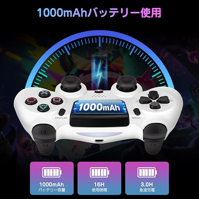 商品名:ps4コントローラー【2025年革新版・アップデート】ps4 コントローラ- pc Turbo連射機能 6軸ジャイロセンサー 二重振動 高精密ボタン Bluetoooth5.4 無線/有線安定接続 1000mAh 急速充電 16時間連続使用 人体工学設計 持ちやすい タッチパッド イヤホンジャック付き ワイヤレスコントローラー P3/P4/P4 Pro/Slim/PC対応 日本語説明書 正規品 WHITE