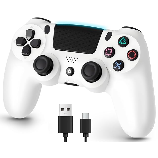 ps4コントローラー【2025年革新版・アップデート】ps4 コントローラ- pc Turbo連射機能 6軸ジャイロセンサー 二重振動 高精密ボタン Bluetoooth5.4 無線/有線安定接続 1000mAh 急速充電 16時間連続使用 人体工学設計 持ちやすい タッチパッド イヤホンジャック付き ワイヤレスコントローラー P3/P4/P4 Pro/Slim/PC対応 日本語説明書 正規品 WHITE