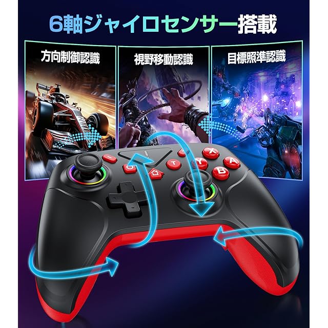 【6軸ジャイロセンサー&マクロ機能搭載】高感度の6軸ジャイロセンサーを搭載し、ワイヤレスSwitchコントローラーの傾きや動きを感知します。視点移動や傾け操作などが簡単に実現し、より良いゲーム体験が楽しめます。また、switch コントローラーの背面ボタン(M1、M2)にはマクロプログラミング機能が搭載されており、複数の連続したアクションを登録し、ボタン1つで再現することができます。同じ作業を繰り返したり、ゲーム中によく行われる特殊なアクションを登録するときに便利です。ゲーム全体を簡単にお楽しみいただけます。