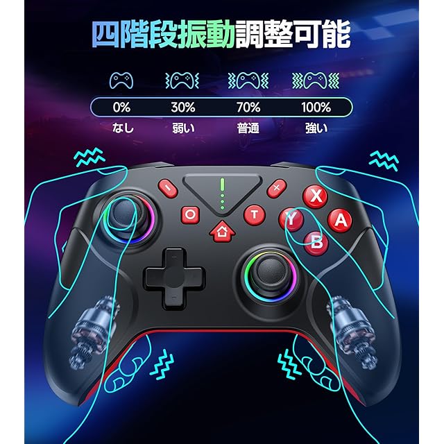 商品名:【2025革新モデル】 Switch 2 コントローラー Switch1/2代対応 ダブルホール機能 TURBO連射機能 マクロ機能 背面ボタン付き 9色RGBライト 1000mAh大容量 Bluetooth 無線接続 スイッチ コントローラー ジャイロセンサー搭載 4階段HD振動 プロコン Switch全世代に対応 Android/IOS/PCにも対応 日本語取扱説明書付き 黒