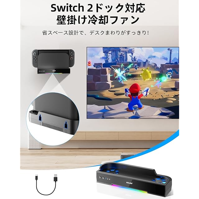 LuxiSync Switch 2用 冷却ファン スイッチ2ドック対応 三段階風速 調整可能 RGBライト付き 静音設計 壁掛け対応 ダブルファン 冷却スタンド USB接続型 放熱クーラー switch 2 周辺機器 | つむぎ屋