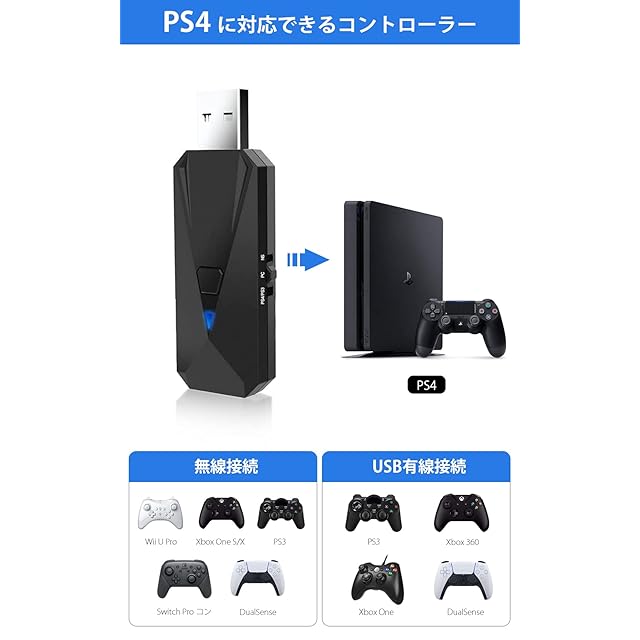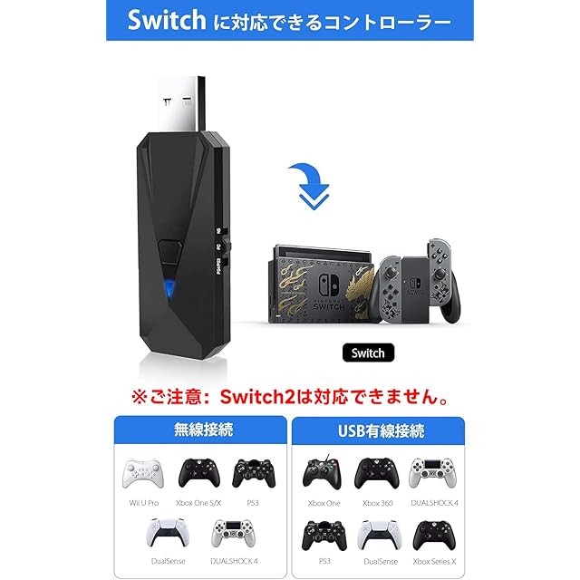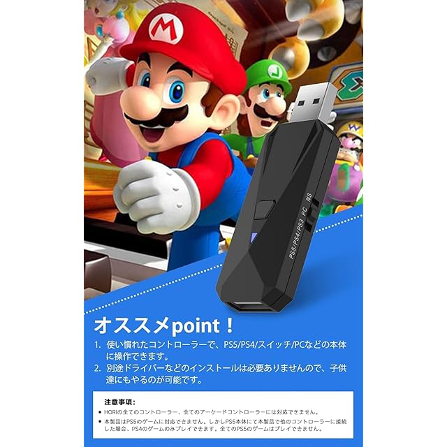 ✨「注意事項」:●HORIの全てのコントローラー、全てのアーケードコントローラー、Victrix Gambitコントローラーには対応できません。●本製品はPS5のゲームに対応できません。PS5本体にて本製品で他のコントローラーと接続する場合、PS4のゲームのみプレイでき、PS5のゲームはプレイできません。●無線接続でPS5コントローラーの振動機能が使用できません。●特にボタンの機能、本製品は純正コントローラー完全に代わることができない、気になるお客様にご注意ください。●ゲーム機がスリープモードになった場合、このSwitch PS4変換アダプターの接続が切れることがあり、再接続が必要になりますので、ご利用の際はご注意ください。