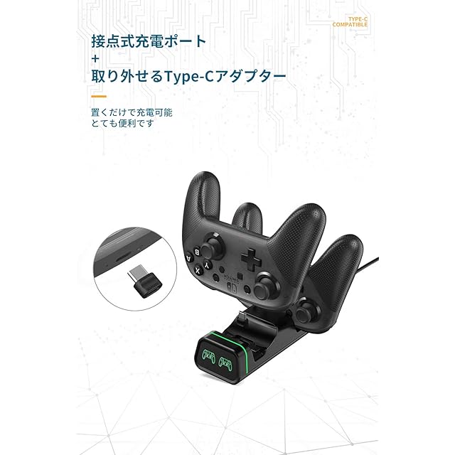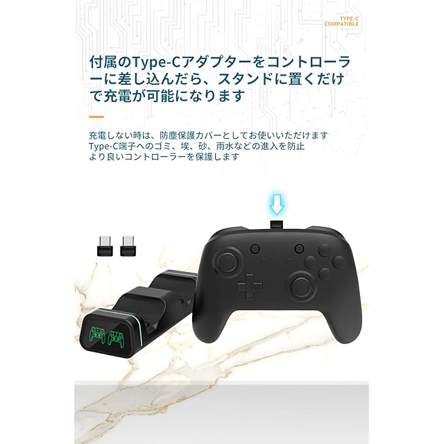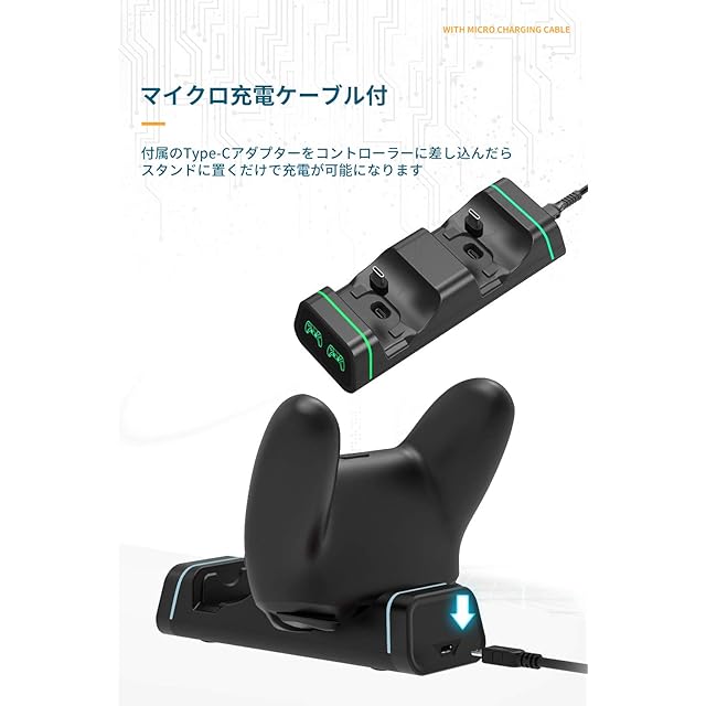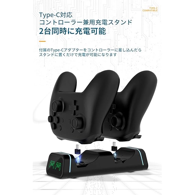 【過充電防止機能搭載】保護回路があり、過電圧、過電流、過熱、短絡などを防止できます。底面に滑り止めを配置して、安定性を確保しています。 充電が終わったら、電源を自動的に切ります、コントローラーを充電器スタンドに一晩中置きっ放しにしても大丈夫です。