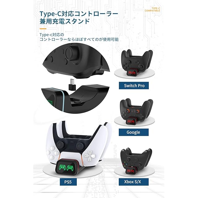 商品名:Switch Pro/PS5コントローラー 充電スタンド 置くだけ Switch Pro PlayStation5 デュアル 対応ゲームコンソール ゲームパッドアクセサリ用 LED指示ランプ付き 滑り止めマット