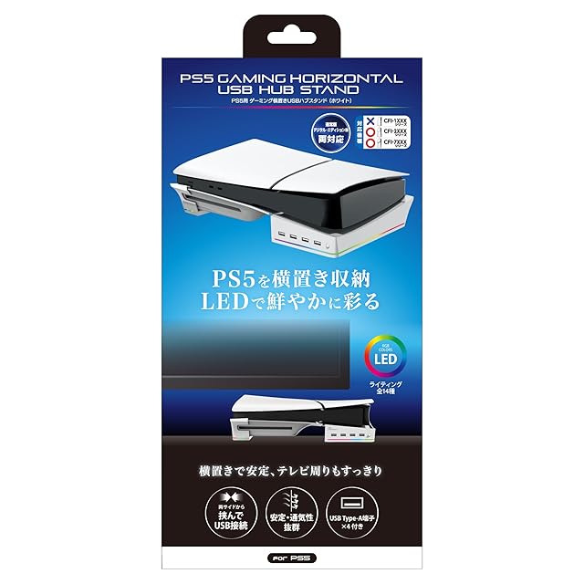 商品名:アンサー PS5(CFI-2000)/PS5Pro(CFI-7000)用 ゲーミング横置きUSBハブスタンド ANS-PSV032WH