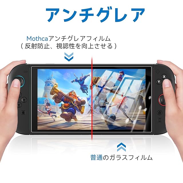 【アンチグレア・反射防止】Mothca独自の反射防止コーティングの加工で、スクリーンの表面の太陽光や蛍光灯などの反射を抑え、目の負担を軽減でき、長時間でSwitchの画面を見ていたり、ビデオを視聴しても、目が疲れにくいです。