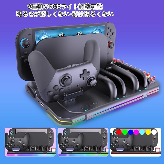 Switch 2 Pro & Switch 2ジョイコン用冷却充電スタンド 【2025新登場-6In1-排熱&充電&収納】ニンテンドースイッチ2 用充電器 スイッチ 2 冷却ファン 冷却风扇内藏 Tomistan Joy Con2コントローラー充 電 対応 収納 一体型 5台同時充 電可能 コントローラードック 急速充 電器 LED充電指示ランプ&9つのRGB ライト付き