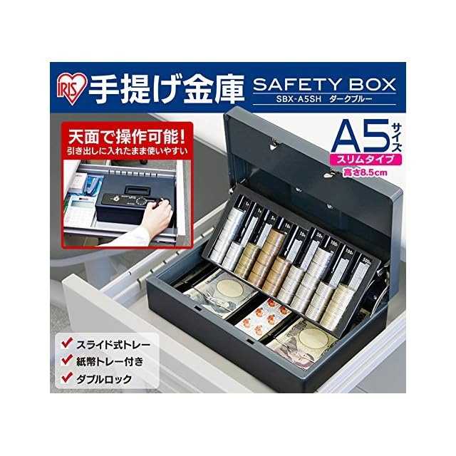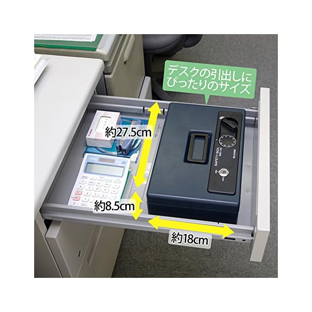 引き出しの中に入れて使用するのに適切な手提げ金庫です。