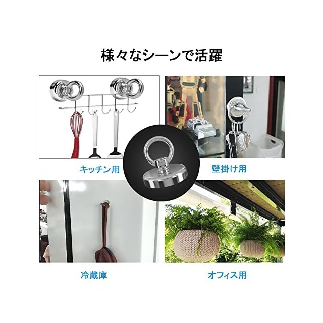 【様々なシーンで活躍】キッチン収納だけではなく、バスルーム、寝室、ロッカー、オフィス、冷蔵庫、倉庫、ロッカーなどに使用できます。ループフックが付いたマグネットので、ループにロープを通して取っ手代わりに重い物を持ち上げるのに重宝してます。完璧な収納フック!